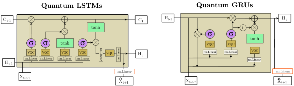 I am currently investigating Quantum machine learning algorithms and their ability to tackle chaotic dynamical systems in a teacher forced setting. The work introduces Quantum LSTMs and Quantum GRUs. So far we benchmarked these model on a simple yet tricky toy problem, i.e. sine trigonometric function, which was used as a benchmark to generalize the comparison from an interpretability standpoint. The better expressiveness of the quantum versions of LSTMs & GRUs was observed with faster convergence, robustness to the varying level of gaussian noise within data and way less parameter count compared to classical versions to achieve same MSE loss with the constraint on epochs.